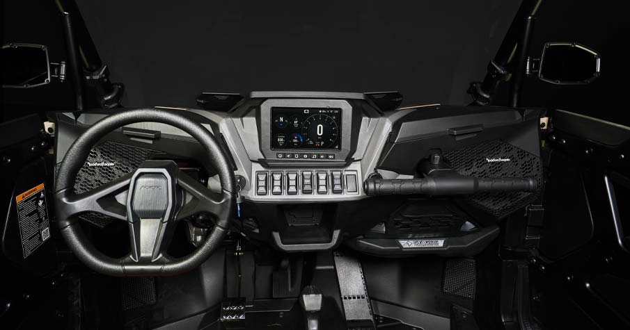 - Color Matched Seats Programmable Speed Limiting PIN Enabled Engine Start Security 660-W Charging System @ 3,000 RPM 6-Position PULSE Bar Front Tow Loop Front Bumper Passenger Grab Handle with Integrated Lug Nut Hex Wrench